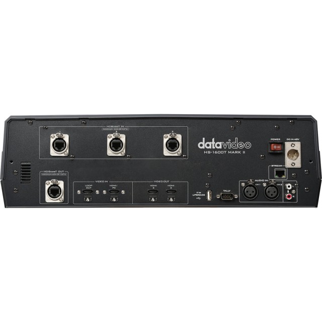 Spoločnosť Datavideo predstavuje najnovšiu verziu svojej najpredávanejšej pracovnej stanice HS-1600T Mark II. Táto verzia Mark II obsahuje niekoľko vylepšení oproti bežnej verzii. Vstup HDMI je teraz vybavený výstupom slučky. Takže po pripojení počítača alebo hernej konzoly môžete mať na stole väčší displej na jednoduchšie monitorovanie tohto vstupu. To sa hodí najmä pri práci s titulkami alebo pri čomkoľvek inom, na čo sa potrebujete absolútne sústrediť. Pripojenie k displeju alebo projektoru pomocou HDBaseT je teraz jednoduchšie ako kedykoľvek predtým. Vstavaný výstup HDBaseT vám poskytuje možnosť pripojenia akéhokoľvek koncového zariadenia s maximálnou dĺžkou kábla 60 m a rozlíšením až 1080p60. Na strane streamovania je pridané duálne streamovanie, takže teraz môžete priamo z jednotky dosiahnuť 2 obľúbené streamovacie platformy, ak máte k dispozícii šírku pásma. Spoločnosť Datavideo stále odporúča používať ich streamovaciu službu dvCloud na streamovanie do viacerých destinácií súčasne, pretože potom môžete použiť SRT do cloudu a zabezpečiť dokonalý obraz s nízkou latenciou, aj keď je vaša šírka pásma obmedzená.