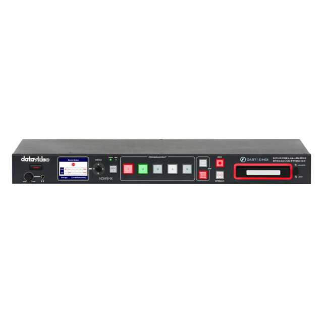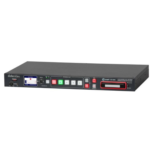 Datavideo iCAST 10NDI integruje funkcie režijnej kamery, ovládača PTZ kamery a streamingového kodéra (a rekordéra) do jedného zariadenia. Ponúka 5 video vstupov vrátane jedného SDI/HDMI, troch HDMI a jedného USB 3.0, plus podporu pre import IP videa (RJ-45). Môže streamovať pomocou protokolov RTMP(S) alebo SRT, plus nahrávať na kartu SD (ISO záznam šiestich kanálov). Viacnásobné zobrazenie, titulky atď.