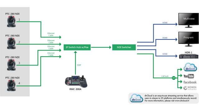 Vďaka 255 programovateľným prednastaveným polohám môžete kameru nastaviť tak, aby sa rýchlo pohybovala medzi polohami pomocou rôznych protokolov vrátane DVIP cez sieť LAN, RS-422 pomocou voliteľného sériového ovládača alebo IR ovládania pomocou priloženého IR diaľkového ovládača. Kamera komprimuje pomocou bežných, vysokokvalitných protokolov H.264 a H.265 na streamovanie cez vašu LAN a môžete súčasne kódovať dva živé video streamy pomocou štandardných protokolov RTSP alebo RTMP, ktoré sú kompatibilné s rôznymi internetovými streamovacími stránkami. Kamera podporuje aj externý zvukový vstup prostredníctvom 3,5 mm stereo vstupu linkovej úrovne a kameru môžete namontovať prostredníctvom montážneho závitu 1/4"-20. Na kamere je červené/zelené kontrolné svetlo, takže vaša miestnosť bude vedieť, či je kamera zapnutá alebo vypnutá.