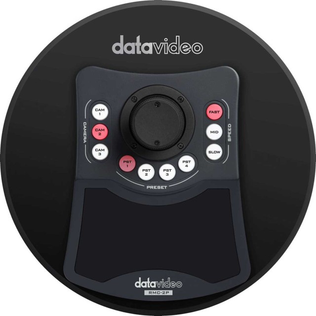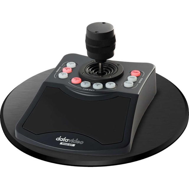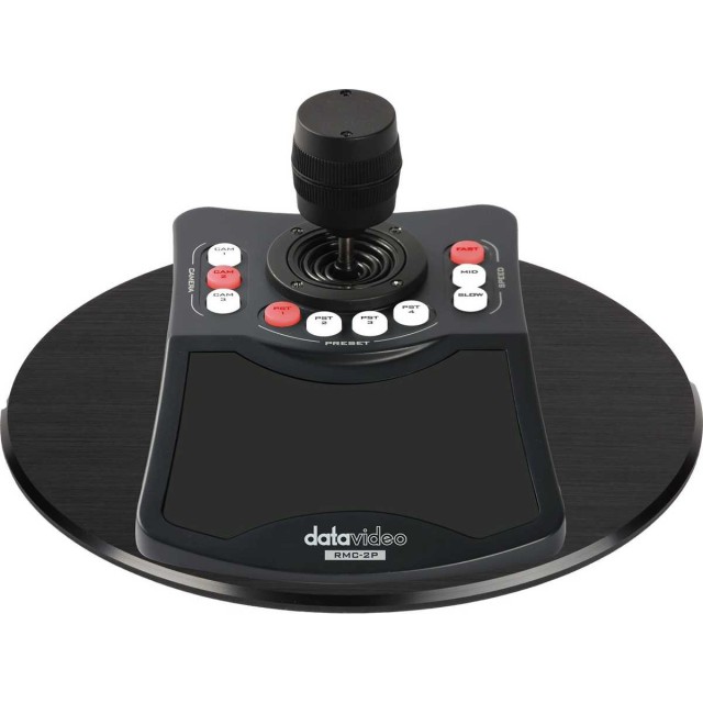 RMC-2P je jednoduchý, všestranný ovládač kamery určený na ovládanie kamier Datavideo PTZ prostredníctvom DVIP. Stlačením tlačidla získate rýchly prístup k štyrom prednastaveným polohám pre každú kameru a pomocou joysticku môžete kameru jednoducho otáčať, nakláňať a približovať. Možno ho používať v spojení s ovládačom TPC-700 s dotykovým panelom alebo iCast…