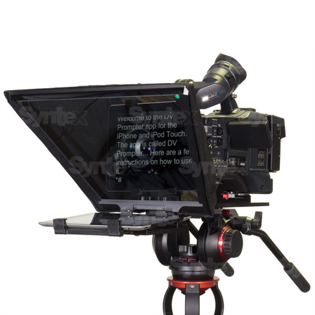 Balík Teleprompter od spoločnosti Datavideo je určený na použitie s tabletmi iPad a Android a kamerami ENG. Obsahuje látkový kryt na kameru, sklenený rám, sklenenú fóliu 60/40, zariadenie na prompter, nastaviteľné držiaky na montáž tabletu (možno namontovať až 12,9" iPad Pro) a stojan na kameru.