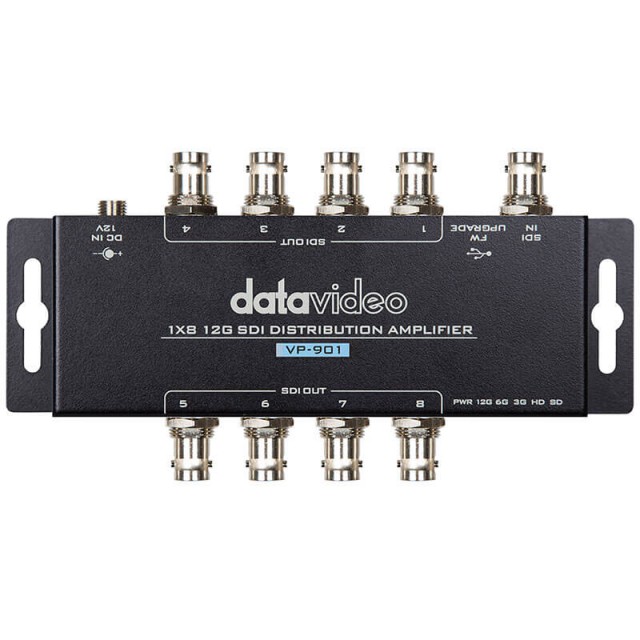 Zosilňovač distribúcie signálu 12G-SDI dokáže replikovať jeden vstup 12G, 4K, HD alebo SD-SDI na 8 výstupov. Je to spoľahlivé zariadenie napr. na súčasné zobrazenie signálu SDI súčasne na viacerých monitoroch.