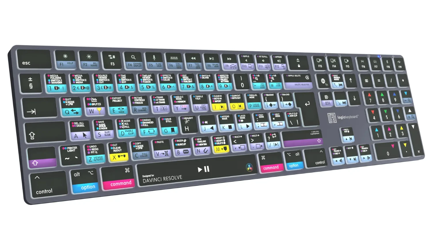 Navrhnutá pre DaVinci Resolve – vyrobená pre MacTáto klávesnica Logickeyboard je vašou voľbou číslo jeden pri editovaní v programe DaVinci Resolve. Skratkové príkazy označené na klávesoch a ich farebne označené definície z vás v okamihu urobia majstra ovládania programu DaVinci Resolve. Klávesnica Logickeyboard je ideálna pre postprodukčné zariadenia, profesionálne editovacie štúdiá a všetkých, ktorí usilovne pracujú s programom DaVinci Resolve.