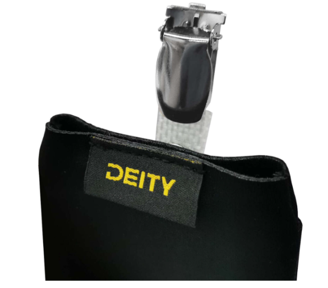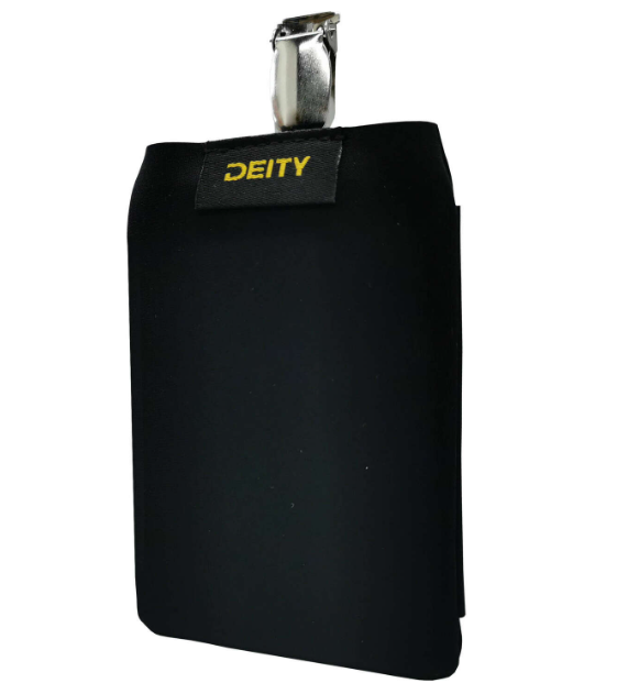 Deity THEOS Pouch Black je mäkké, diskrétne puzdro určené na pohodlné a bezpečné upevnenie vysielača THEOS DBTX počas filmových, divadelných a živých produkcií.