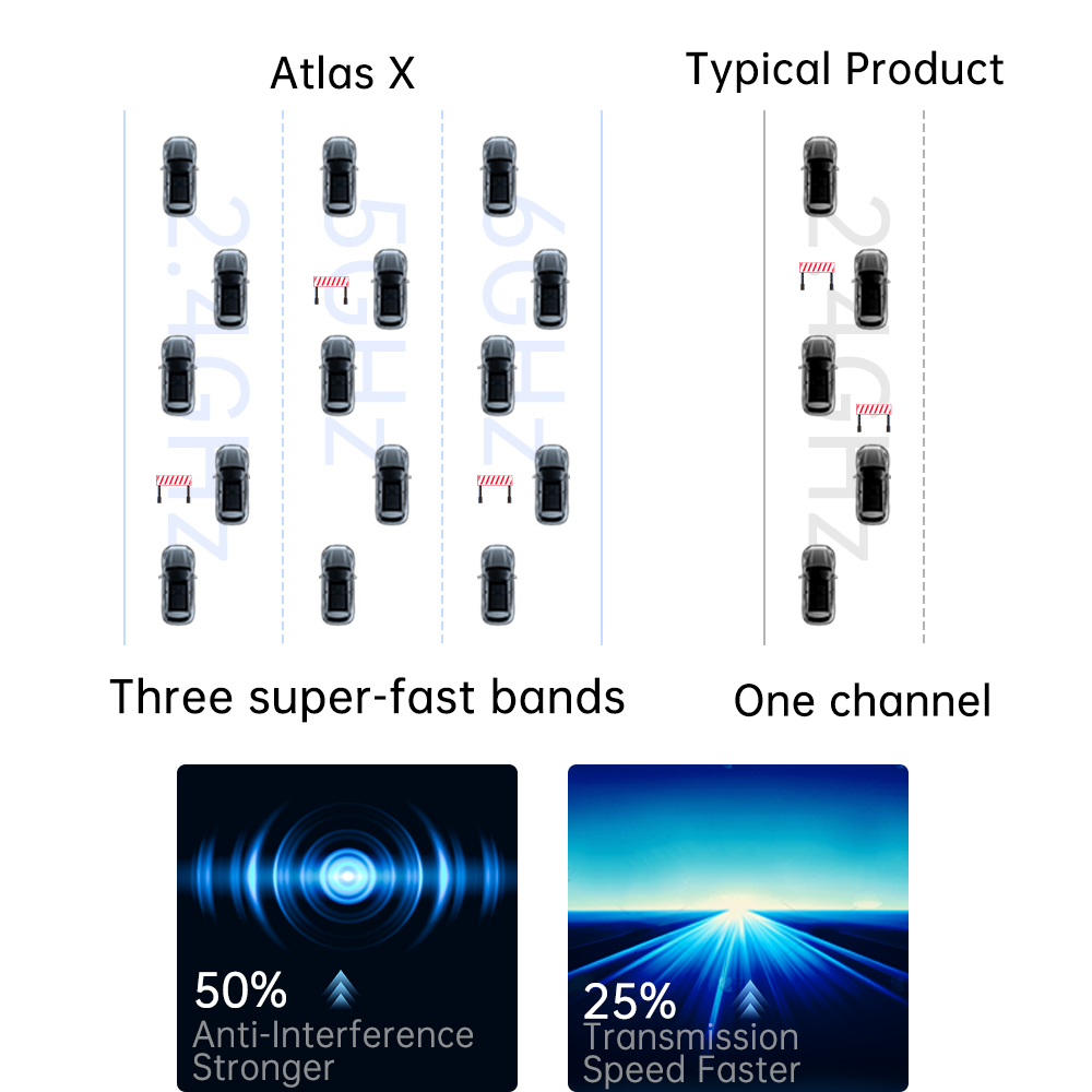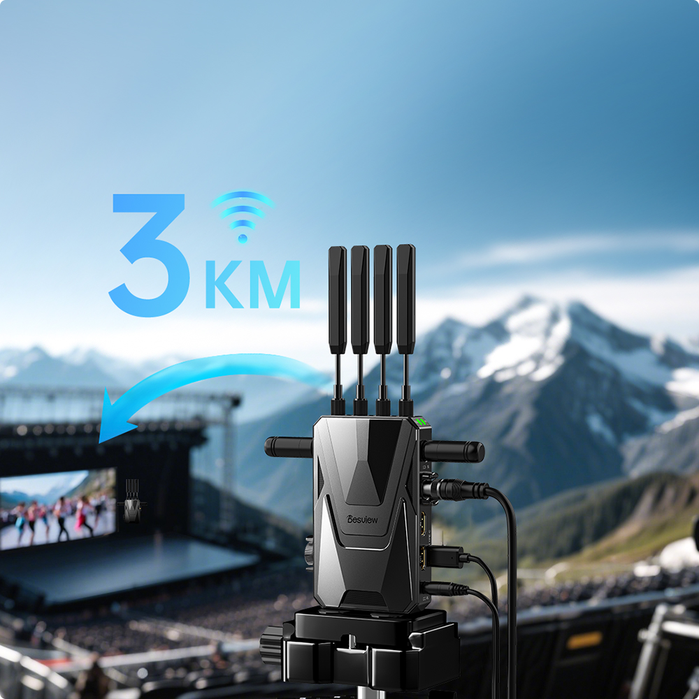 Stabilné pokrytie na veľké vzdialenosti, dosah až niekoľko kilometrov Vďaka trojbandovému prenosu dosahuje Atlas X prenosovú vzdialenosť až 3 km v otvorenom prostredí bez prekážok. Zvláda veľkoplošné mobilné natáčanie s vysokou priechodnosťou stien a spĺňa požiadavky na monitorovanie na pľaci v akomkoľvek zložitom prostredí.