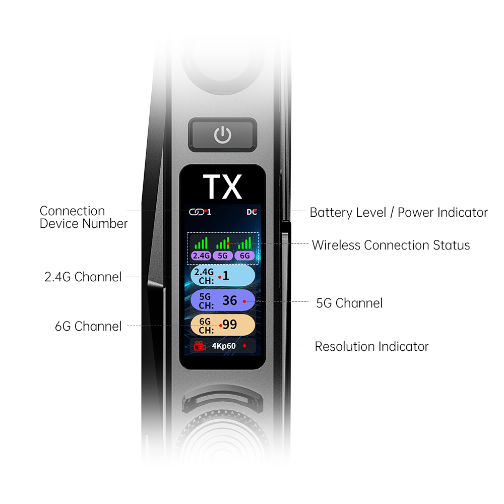 | 1,05-palcový farebný LCD displej Zobrazuje stav signálu, kanálové pásmo a úroveň batérie v reálnom čase, všetky údaje sú vizualizované na obrazovke pre rýchlejšie nastavenie. |