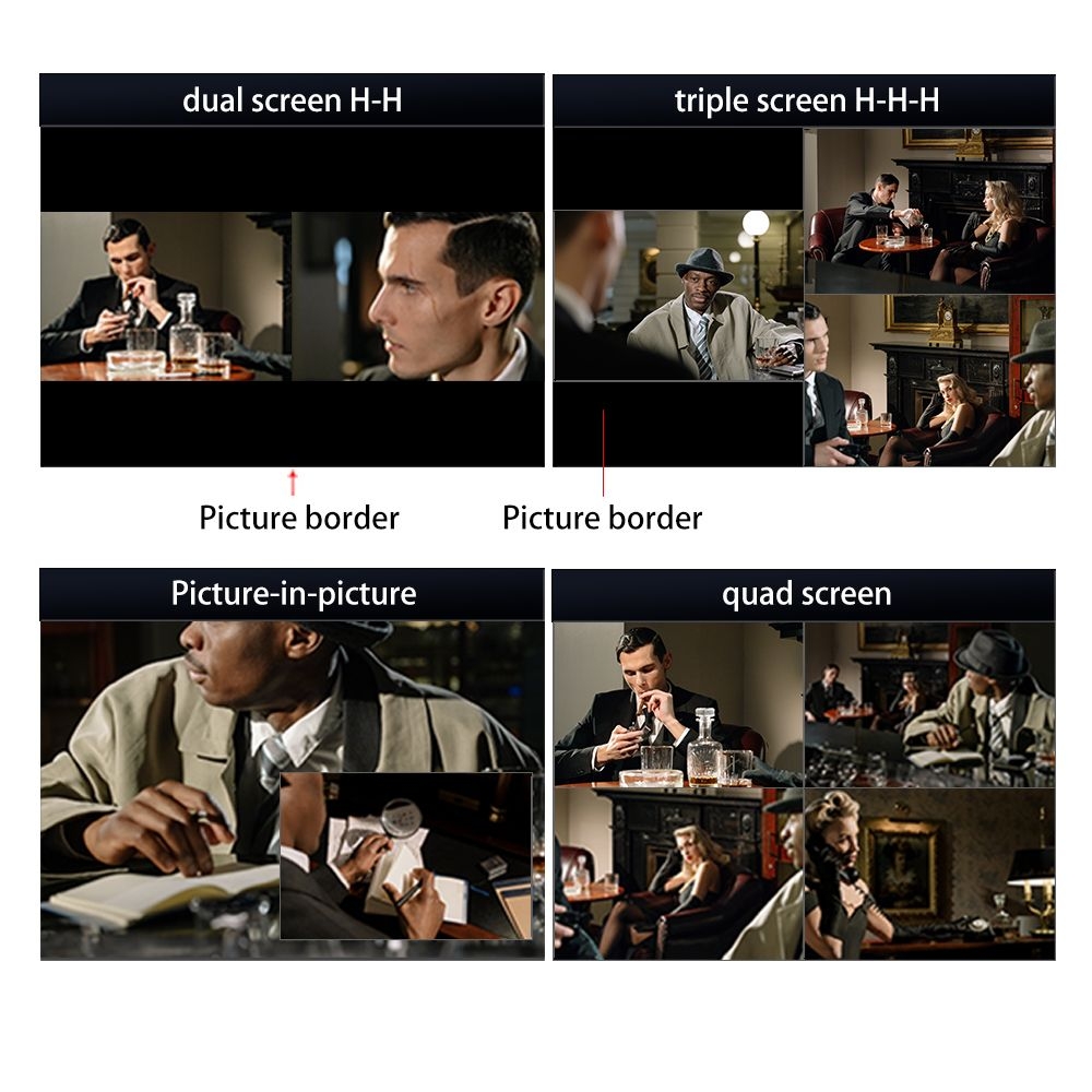 Režim viacerých obrazoviek Obrazovku možno nastaviť na jednu obrazovku, dve obrazovkytri obrazovky alebo štyri obrazovky. podporuje režim obraz v obraze, aby vyhovoval rôznym potrebám monitorovania.