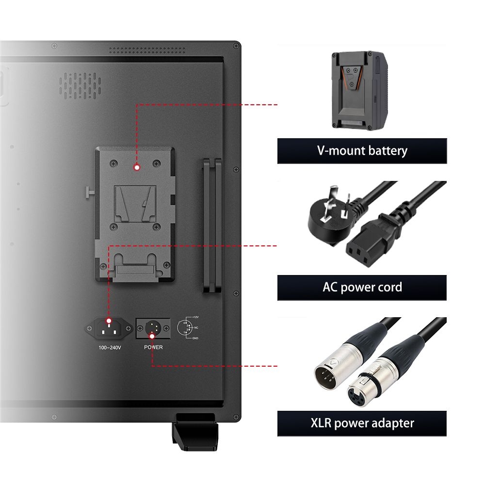 Napájací kábel AC Vstup XLR pre napájanie Podpora napájania z batérií V-mount |