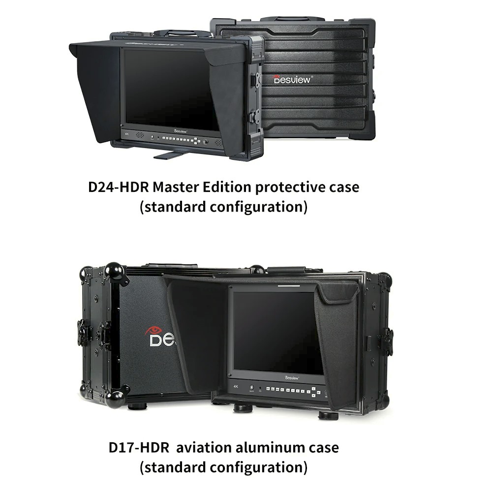 Desview D24-HDR je určený pre profesionálne vysielanie, živú produkciu a monitorovanie v štúdiu, kde je nevyhnutná presnosť, flexibilita a spoľahlivosť. Vďaka úžasnému 24-palcovému UHD 4K displeju s rozlíšením 3840×2160 poskytuje monitor ultračisté detaily, široké pozorovacie uhly 178° a široký farebný gamut 99,5 % DCI-P3 pre presné reprodukovanie farieb. S podporou HDR monitorovania poskytuje vylepšený dynamický rozsah, odhaľuje bohatšie svetlá, hlbšie tiene a prirodzenejšie tónové prechody.