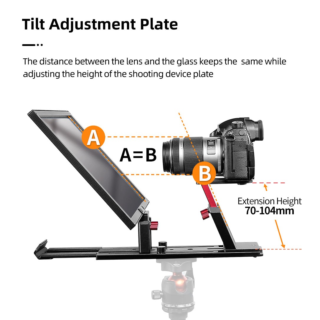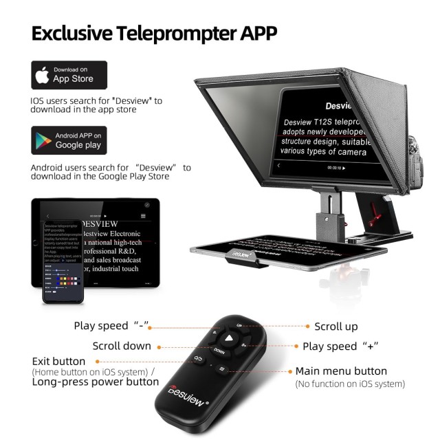 Profesionálny teleprompter Desview T12S, katalógové číslo des-T12S, vám umožňuje plynulo čítať scenár pri natáčaní videí alebo prezentáciách. Tento výkonný teleprompter je ideálny pre vlogerov, tvorcov obsahu, profesionálnych moderátorov a firemné účely. Desview T12S je ľahko použiteľný a vysoko spoľahlivý a pomôže vám dosiahnuť profesionálne výsledky a zvýšiť vašu sebadôveru pred kamerou. Objavte nový štandard pre čítanie textu počas akéhokoľvek natáčania.