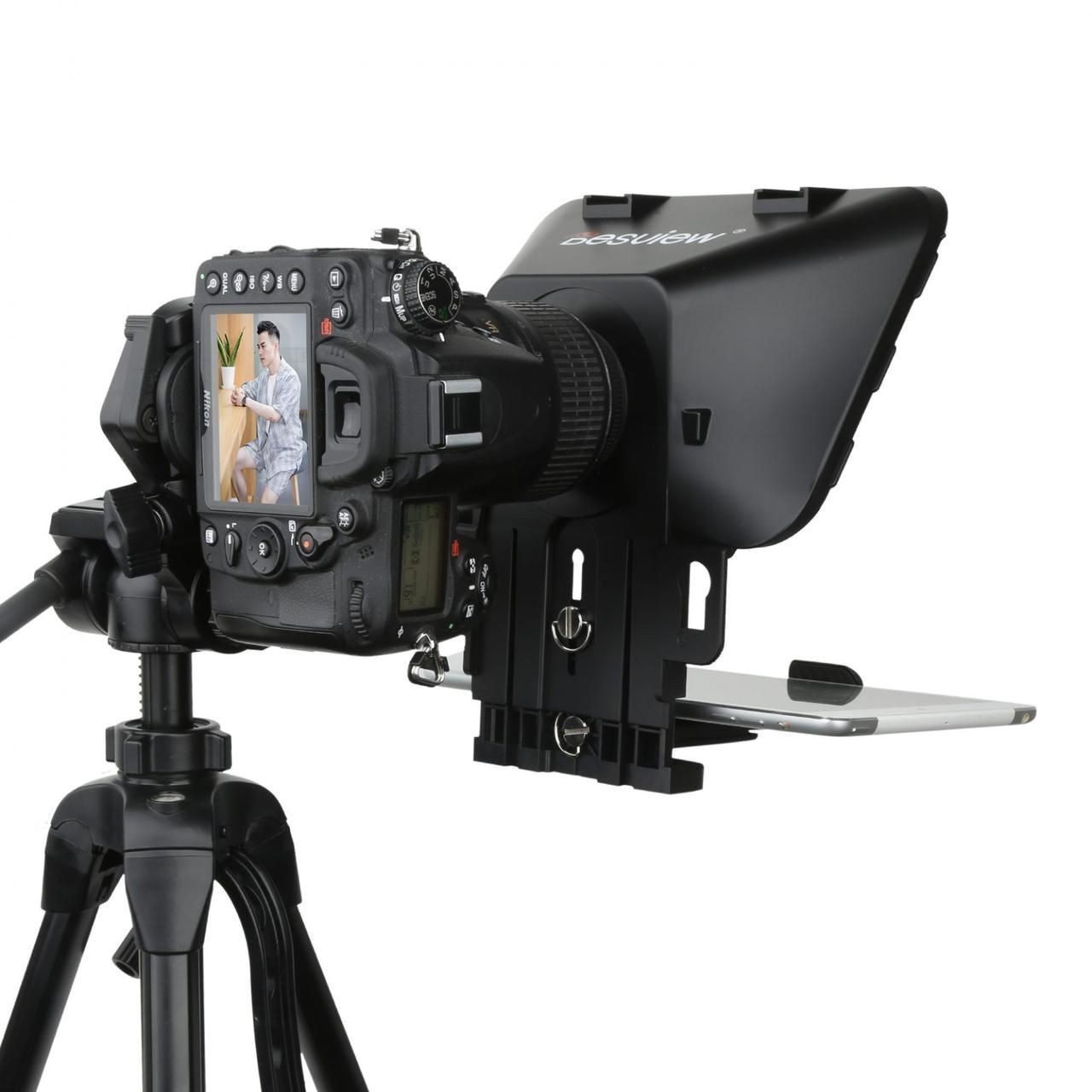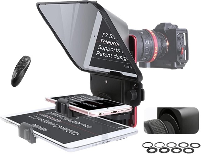 Teleprompter Desview T3 je kompaktné a profesionálne riešenie autocue určené pre smartfóny a tablety s uhlopriečkou do 11 palcov, vďaka čomu je ideálny pre vlogerov, streamerov, pedagógov a moderátorov. Vďaka sklu s vysokou priepustnosťou svetla, širokej kompatibilite zariadení a jednoduchému ovládaniu pomocou diaľkového ovládača alebo bezplatnej mobilnej aplikácie pomáha T3 tvorcom udržiavať prirodzený očný kontakt a zároveň poskytovať plynulé a sebavedomé výkony pred kamerou.