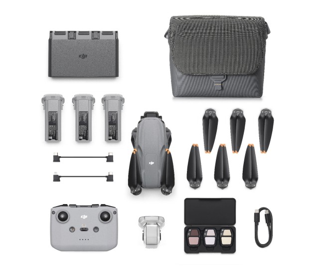 Súprava DJI Air 3S Fly More Combo Kit (DJI RC-N3) obsahuje diaľkový ovládač DJI RC-N3, súpravu ND filtrov, dve ďalšie batérie, nabíjací rozbočovač, tašku na rameno a ďalšie príslušenstvo. V predaji od 15. októbra 2024.
