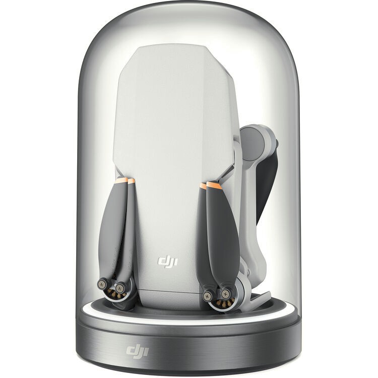 Nabíjací stojan DJI Charging Display Base vám umožňuje vystaviť a nabíjať vaše zariadenie Mavic Mini alebo Mini 2 súčasne. Tento stojan s elegantnou čiernou priehľadnou kopulou a základňou udržiava váš dron nabitý a zároveň poskytuje elegantnú prezentáciu na stole.