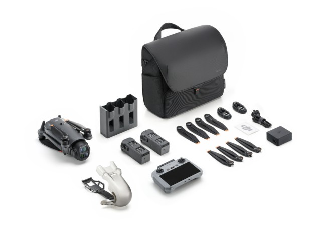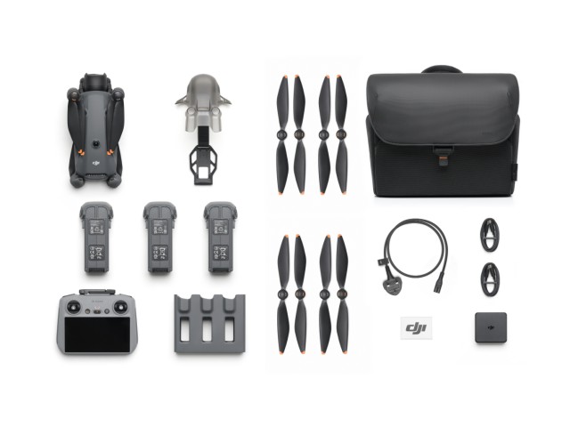 DJI Mavic 4 Pro je kamerový dron s tromi objektívmi. Verzia Fly More Combo obsahuje diaľkový ovládač DJI RC 2, dve ďalšie batérie, nabíjací rozbočovač, puzdro na prenášanie a ďalšie príslušenstvo na kompletnú leteckú podporu.