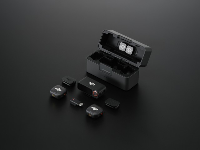 Po dokončení natáčania jednoducho použite nabíjacie puzdro a dátový kábel USB-C na pripojenie oboch vysielačov k počítaču alebo smartfónu. Editácia a zdieľanie sú veľmi rýchle a jednoduché, všetky interne zaznamenané súbory sa prenesú naraz. Vysielač môžete tiež pripojiť k aplikácii DJI Mimo a stiahnuť si dané audio súbory.
