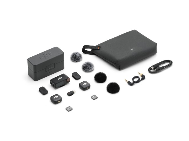 Do nabíjacieho puzdra sa bez problémov zmestia dva vysielače a jeden prijímač. Každý vysielač je možné uložiť aj s protiveternou ochranou a s nasadeným magnetom alebo magnetickým klipom. Pri uložení vysielačov s klipmi je vo veku navyše priestor pre magnety a poistný audio adaptér.