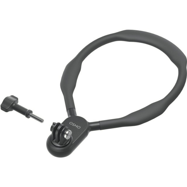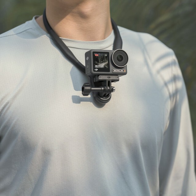 Zaznamenávajte pôsobivé zábery z vlastnej perspektívy bez použitia rúk vďaka závesnému držiaku na krk Osmo Action, ktorý je navrhnutý pre pohodlie, flexibilitu a bezpečné upevnenie kamier radu Osmo Action.