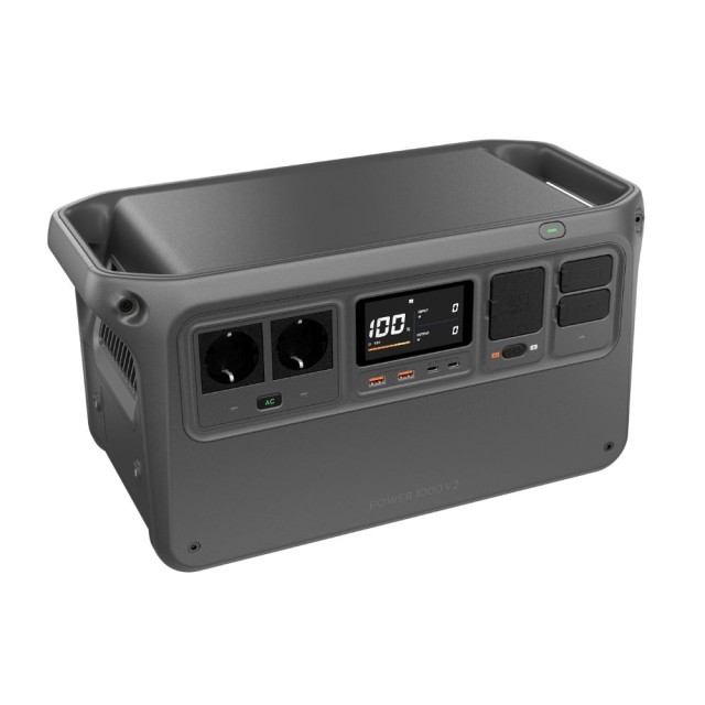 Úsporné a šetrné k životnému prostrediu. DJI Power 1000 V2 možno dobíjať pomocou adaptérového modulu solárneho panelu DJI Power (MPPT) alebo superrýchlej solárnej nabíjačky DJI Power 1,8 kW Solar/Car s príkonom až 1800 W. Úplné dobitie zo stavu 0 % trvá len 40 minút.