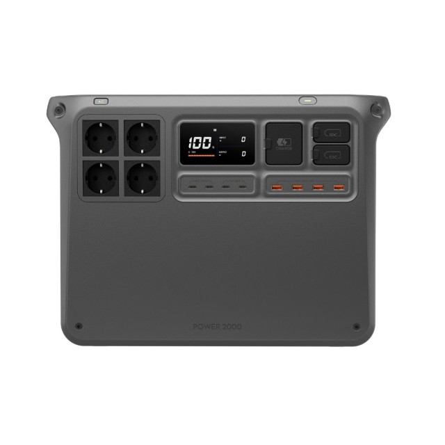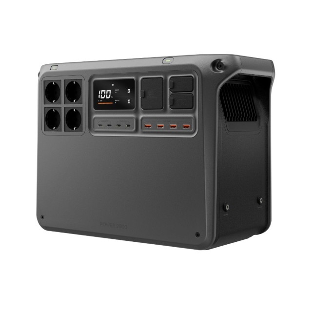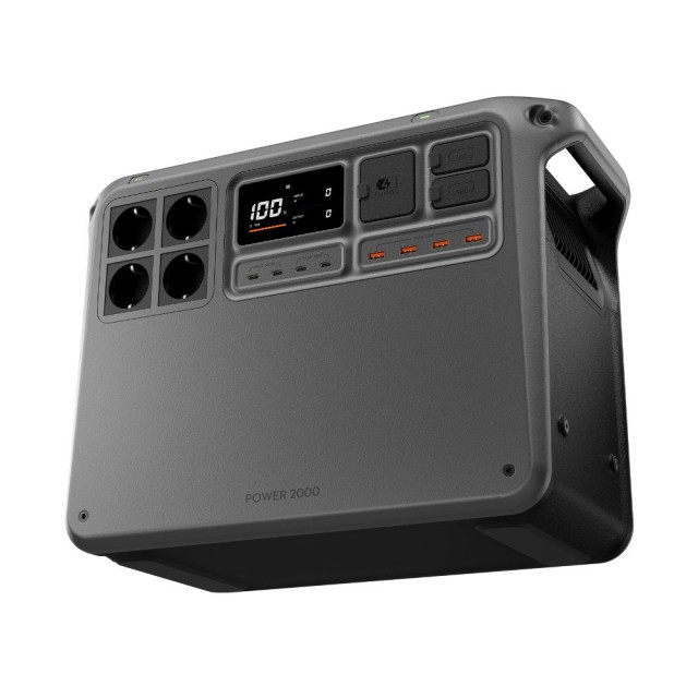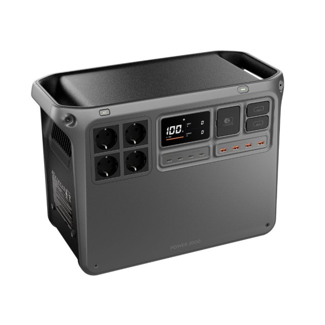 DJI Power 2000 ponúka kapacitu 2 048 Wh v malom "prenosnom" formáte, ktorý sa ľahko zmestí do kufra auta. Ovládacie prvky, porty a displeje sú umiestnené na prednej strane zariadenia, čo uľahčuje používanie a šetrí miesto. Môže sa pripojiť až k desiatim rozširujúcim batériám s kapacitou 2048 Wh, čo predstavuje celkovú kapacitu až 22528 Wh. Ideálne riešenie na každodenné zálohovanie a núdzové napájanie domácnosti.
