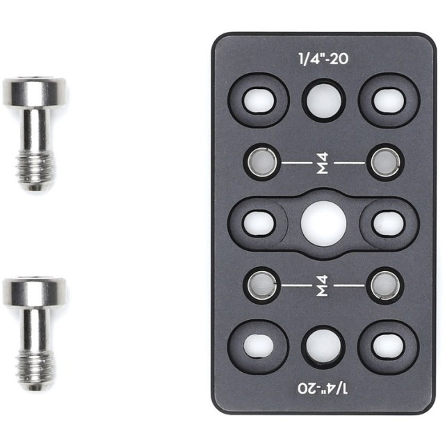 DJI Ronin-S Cheese Plate je univerzálna montážna doska pre príslušenstvo, ktorá sa pripája na bočnú stranu gimbalu Ronin-S a umožňuje vertikálne alebo horizontálne umiestnenie príslušenstva pomocou závitových otvorov M4 alebo 1/4"-20.