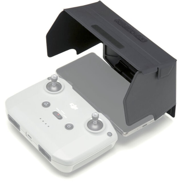 Kryt monitora DJI RC-N1 je navrhnutý tak, aby znižoval odlesky a zlepšoval viditeľnosť pri lietaní na priamom slnku. Jednoducho sa pripája k diaľkovému ovládaču RC-N1 a poskytuje horné a bočné tienenie, ktoré blokuje ostré svetlo, čím uľahčuje sledovanie displeja smartfónu pri pilotovaní dronu vonku.