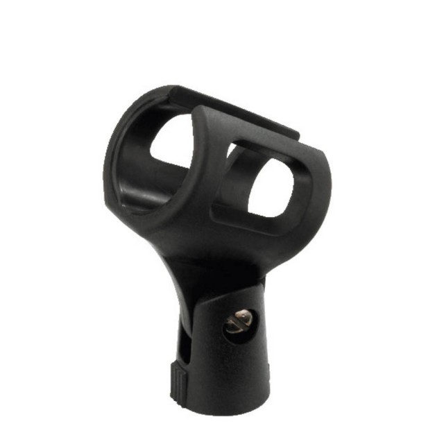 Držiak na mikrofón z čierneho flexibilného pevného plastu, s priemerom 32 až 42mm. Vhodné pre bezdrôtové ručné mikrofóny s väčšou rúčkou, s jedným štandardným závitom 16 mm (⅝") .