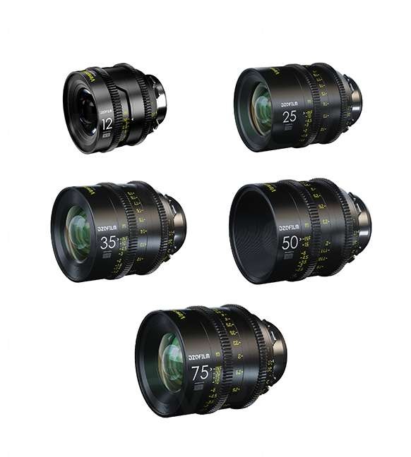 Súprava 5 objektívov DZO Optics Vespid Prime (12/25/35/50/75 mm T2.1-T2.8) PL + EF bajonet s puzdrom: Full-frame/Vista Vision cine primes s vymeniteľnými PL/EF bajonetmi, 270° rozsahom zaostrenia, 16-lamelovou clonou pre krémové bokeh, konzistentným 80 mm predným/77 mm filtrom, minimálnym dýchaním, ľahkou hliníkovou konštrukciou – ideálne pre gimbal/dron/ručné natáčanie.