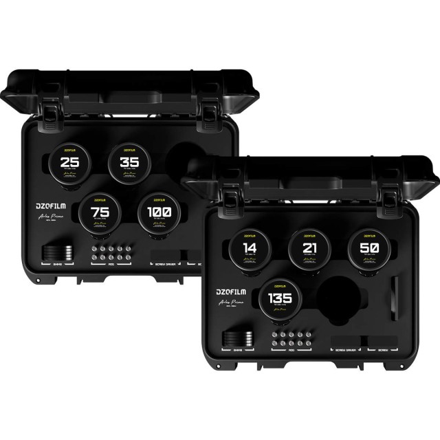 Pripravte sa posunúť svoju kreativitu na vyššiu úroveň s DZOFilm Arles, radom profesionálnych filmových objektívov s pevnou ohniskovou vzdialenosťou, vysokou svetelnosťou až do T/1,4 a výnimočnou kvalitou obrazu! Súprava ôsmich objektívov zo série DZOFilm Arles s ohniskovými vzdialenosťami 14, 21, 25, 35, 50, 75, 100 a 135 mm.