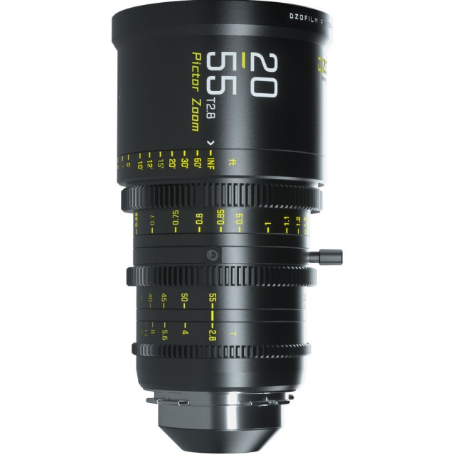 Parfokálny filmový objektív DZO Pictor 20-55 mm T2,8 pokrýva snímače formátu Super 35 / APS-C, ponúka svetelnosť T2,8 v celom rozsahu ohniskových vzdialeností a dodáva sa s vymeniteľnými bajonetmi PL a EF. Konštrukcia objektívu prakticky eliminuje dýchanie a zaručuje ostrú kresbu v celom rozsahu a pekné vykreslenie scény mimo hĺbky ostrosti vďaka 16-násobnej clone. Prstence zaostrovania, clony a zoomu sú samozrejme vrúbkované na jednoduché diaľkové ovládanie so systémami bočného zaostrovania (M0.8; pohyb zaostrovacieho prstenca 270°). Predný priemer je štandardný 95 mm pre bežné kompendiá, závit filtra je 86 mm. K dispozícii je aj nožička na podopretie objektívu v súprave. Čierny variant. Hmotnosť približne 1520 g. Pre bajonety PL a EF.