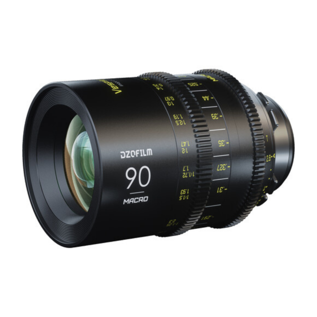 Relatívne malý a ľahký objektív DZOFilm VESPID 90 mm T2,8 je súčasťou série objektívov VESPID od spoločnosti DZOFilm a je vhodný na full-frame snímky. Tento makroobjektív má predný priemer 80 mm, čo mu umožňuje pracovať prakticky s akýmkoľvek matným boxom v štýle cine. Vďaka malým rozmerom je tento objektív atraktívnou voľbou pri práci s dronmi a gimbalmi, ako aj pri natáčaní z ruky. Vymeniteľný PL bajonet umožňuje používať plne manuálny objektív na rôznych moderných a historických kinofilmových fotoaparátoch, zatiaľ čo plnoformátové pokrytie podporuje snímače s obrazovým kruhom do 46,5 mm na použitie na fotoaparátoch so snímačmi až do full-frame bez vinetácie.