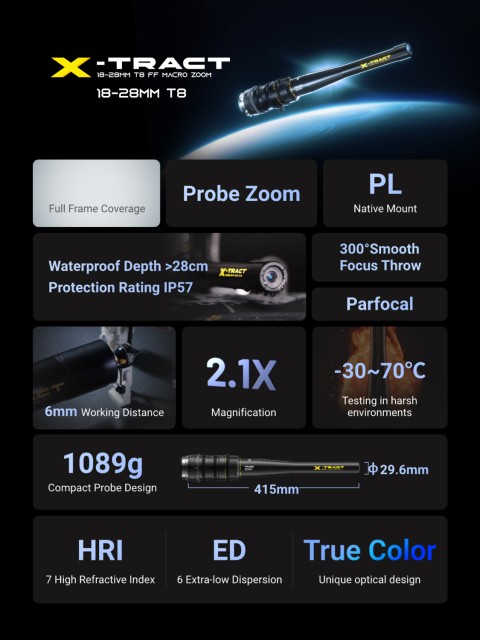 Predstavujeme nový DZOFILM X-tract 18-28mm Metric T8 PL s pevným puzdrom. Funkcia zoomu Nová forma/kategória makro snímania - sonda so zoomom…