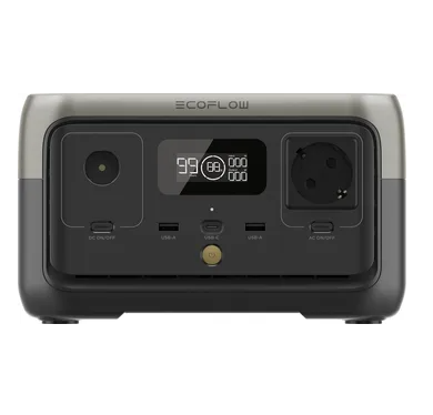 EcoFlow River 2 je prenosná elektráreň s kapacitou 256 Wh a výkonom 600 W. Je ideálna na kempovanie, natáčanie v exteriéri alebo akúkoľvek činnosť mimo siete, poskytuje spoľahlivý zdroj energie a dá sa ľahko dobíjať pomocou solárnych panelov. Jej výkon môžete sledovať a spravovať prostredníctvom mobilnej aplikácie EcoFlow.