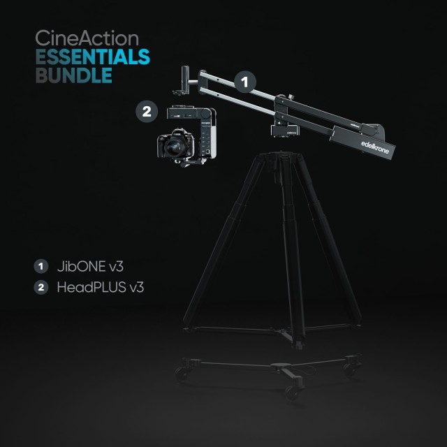 Edelkrone CineAction Bundle - Essentials: Obsahuje HeadPLUS v3 a JibONE v3 pre presné pohyby kamery a dynamické natáčanie.