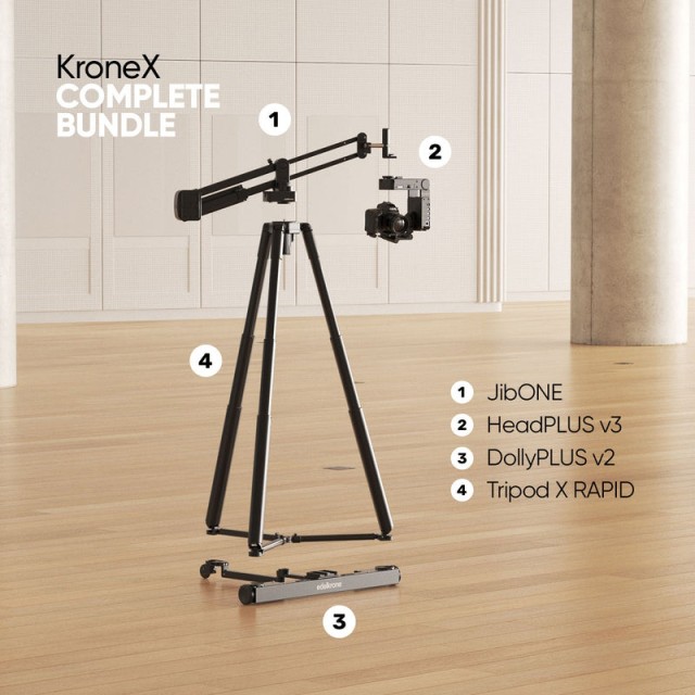 Edelkrone KroneX Bundle - kompletný: Obsahuje HeadPLUS v3, JibONE v3, DollyPLUS v2 a Tripod X RAPID pre presné pohyby kamery a dynamické snímanie.