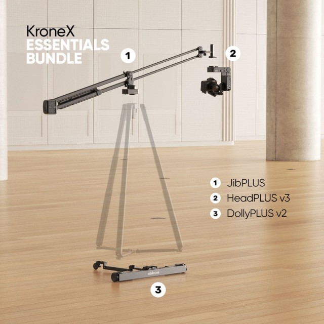 Edelkrone KroneX Bundle - Essentials: obsahuje HeadPLUS v3, JibPLUS a DollyPLUS v2 na presné pohyby kamery a dynamické snímanie.