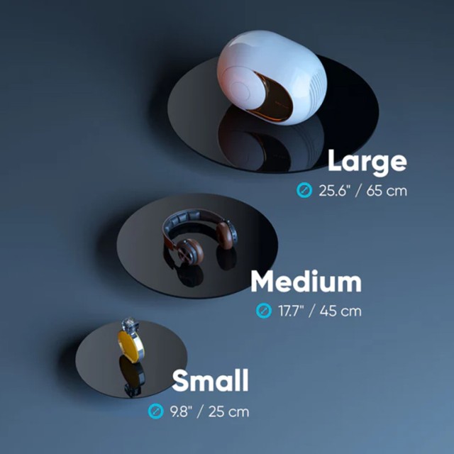 Modul otočného stola je navrhnutý na plynulé otáčanie výrobku o 360° a je k dispozícii v troch veľkostiach, aby vyhovoval rôznym potrebám. Stredné a veľké modely sú vybavené stojanom z plexiskla na zvýšenie stability.