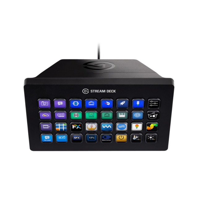 Začnite streamovať. Upravte úrovne zvuku a stlmte mikrofón. Vylaďte osvetlenie. Prepínajte kamery. Použite dolné tretiny. Zmeňte scény. Aktivujte prestávkovú obrazovku. Spúšťajte videá, obrázky, GIFy a zvukové ukážky na obrazovke. A zakončite to svojím charakteristickým outrom. Pokiaľ ide o pokročilú živú produkciu, Stream Deck XL vám poskytuje najvyššiu kreatívnu kontrolu.