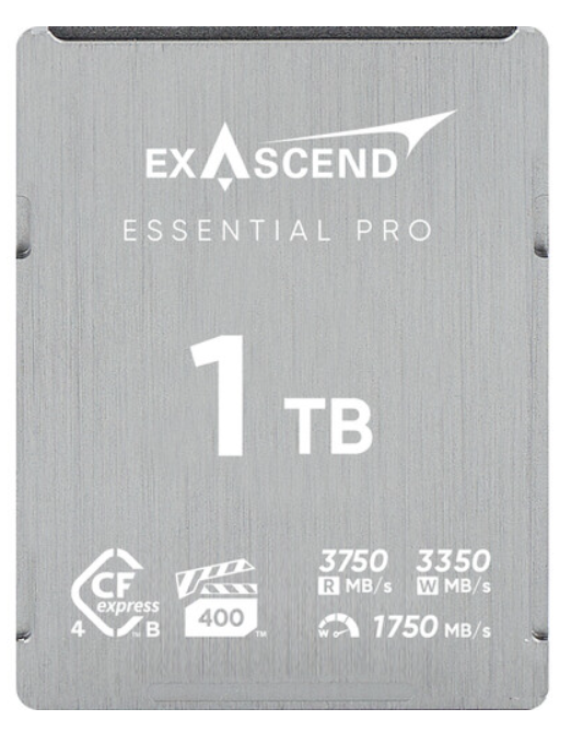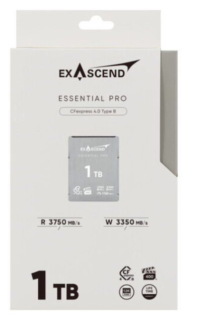 Karta Exascend EXPC4EB001TB Essential Pro CFexpress 4.0 Type B 1 TB poskytuje tvorcom rýchlosť čítania 3750 MB/s a rýchlosť zápisu 3350 MB/s pre plynulé video v rozlíšení 8K/12K pri 120 fps. Je certifikovaná podľa VPG-400, disponuje adaptívnou tepelnou kontrolou, vysokou odolnosťou (600 TB TBW) a doživotnou zárukou s obnovou dát.