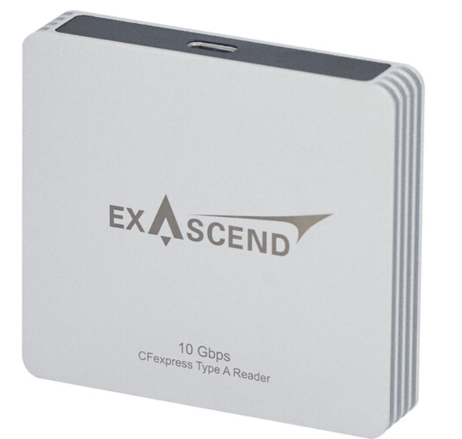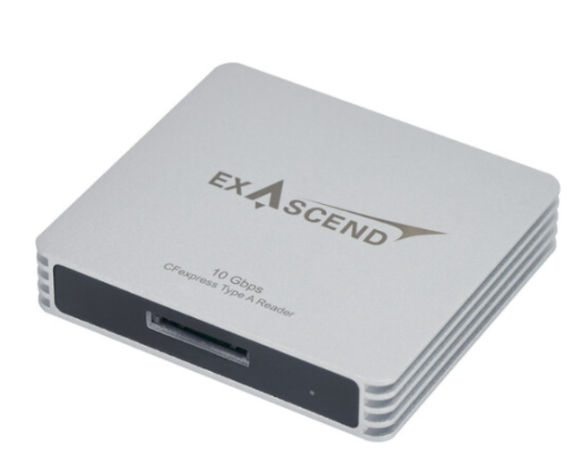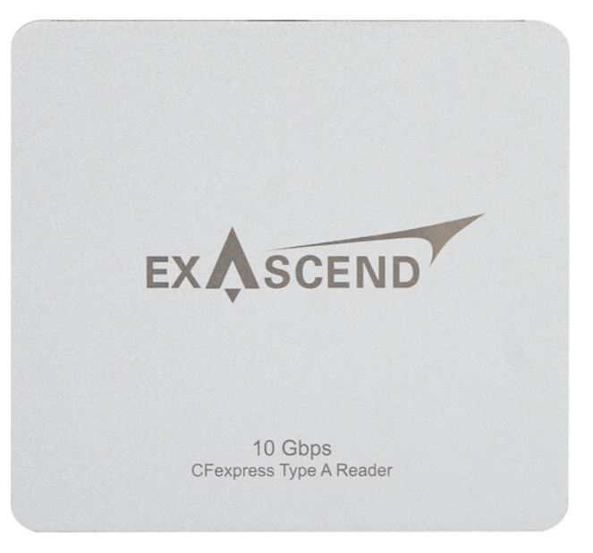 Čítačka kariet Exascend EXCRCFA1 CFexpress Type A poskytuje prenosovú rýchlosť 10 Gbps USB 3.2 Gen 2 pre fotografie 8K RAW a fotografie s vysokým rozlíšením. Je vyrobená z hliníka, napájaná z zbernice a obsahuje kábel USB-C na USB-A + adaptér USB-A na USB-C – ideálna pre profesionálne pracovné postupy na cestách.