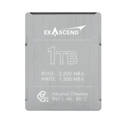 Exascend Industrial CFexpress CFB400 PCIe Gen4 1 TB (EXPC4SB001TB-I) je odolná karta CFexpress typu B s 176-vrstvovým 3D TLC NAND, ktorá ponúka rýchlosť čítania až 3 500 MB/s a rýchlosť zápisu až 3 000 MB/s pre video a bursts s vysokou šírkou pásma 8K/4K. S prevádzkovou teplotou od -40 °C do +85 °C s adaptívnou tepelnou kontrolou, SED šifrovaním (TCG Opal 2.0) a 370k/170k IOPS je ideálna pre priemyselné kamery, sledovacie systémy a vstavané systémy.