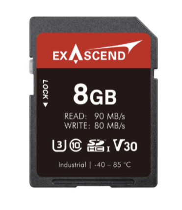Exascend Industrial SD300 V30 C10 SD 6.0 8 GB (číslo dielu EX8GSDV30-PIDE) je vysoko spoľahlivá pamäťová karta SDXC zo série SD300, optimalizovaná pre extrémne priemyselné, vstavané a bezpečnostné aplikácie, kde je nevyhnutný konzistentný výkon a integrita údajov. Je vyrobená s 3D TLC alebo pSLC NAND flash pamäťou riadenou pokročilým radičom prostredníctvom rozhrania SD 6.0 UHS-I a poskytuje sekvenčnú rýchlosť čítania až 90 MB/s a rýchlosť zápisu až 80 MB/s, pričom podporuje triedy výkonu V30 (trvalý zápis 30 MB/s), U3, C10 a A2 pre plynulé nahrávanie videa v rozlíšení 4K UHD, rýchle sériové fotografovanie a spúšťanie aplikácií bez výpadkov snímok alebo vyrovnávacej pamäte. Karta ponúka široký rozsah kapacít od 8 GB až po vyššie hustoty pre flexibilné nasadenie v strojovom videní, automobilových ECU alebo bránach IoT. Je navrhnutá pre náročné podmienky a funguje v rozmedzí teplôt od -40 °C do +85 °C (skladovanie od -50 °C do 95 °C) s nízkym napätím (2,7–3,6 V, <1,5 W aktívny výkon). S MTBF 2 000 000 hodín a vynikajúcou výdržou (TBW až 320 TB pre modely s kapacitou 8 GB) sa vyznačuje odolnosťou voči nárazom/vibráciám (1 500 G/20 G), ochranou proti ESD (8 kV) a vodotesnosťou (IPX7), čím eliminuje mechanické poruchy bežné u pevných diskov.