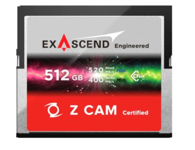 Karta Exascend EXSZ3X512GB 512GB Z CAM CFast poskytuje trvalý výkon 520 MB/s pre plynulú kinematografiu. Disponuje adaptívnou tepelnou kontrolou (ATC) a voliteľnou funkciou záchrany dát z výroby. Certifikovaná spoločnosťou Z CAM s priemyselnou odolnosťou pre extrémne prostredia.
