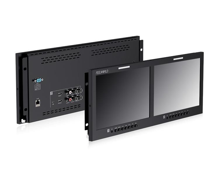 Dvojitý 10,1-palcový monitor Feelworld D101-PLUS ponúka vysokokvalitné Full HD IPS displeje s rozlíšením 1920 x 1200 a pozorovacím uhlom 80/80°, ktoré sú ideálne na presné monitorovanie farieb na pľaci alebo v prostredí televízneho vysielania. Jeho konštrukcia s možnosťou montáže do racku 4RU umožňuje jednoduchú inštaláciu do televíznych stien, vysielacích vozidiel alebo štúdiových zariadení.
