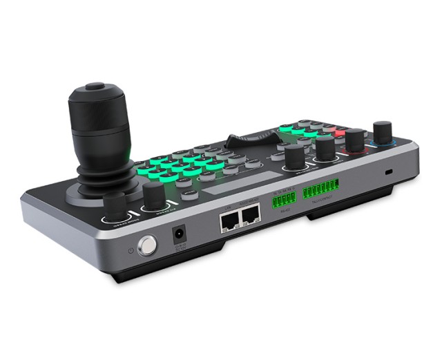 KBC20N je vybavený 4D joystickom, ktorý umožňuje presné ovládanie otáčania, naklápania, priblíženia a otáčania, zatiaľ čo prispôsobiteľné tlačidlá poskytujú flexibilnú konfiguráciu pre často používané príkazy. Ovládač podporuje až 255 kamier, čím ponúka škálovateľnosť pre veľké produkcie. Možnosti pripojenia zahŕňajú porty LAN, RS232/RS485/RS422 a TALLY/CONTACT a zariadenie podporuje PoE (Power over Ethernet), čo zjednodušuje inštaláciu a správu napájania. Intuitívne rozloženie tlačidiel a firmware, ktorý je možné aktualizovať cez web, ďalej zvyšujú prevádzkovú efektívnosť.
