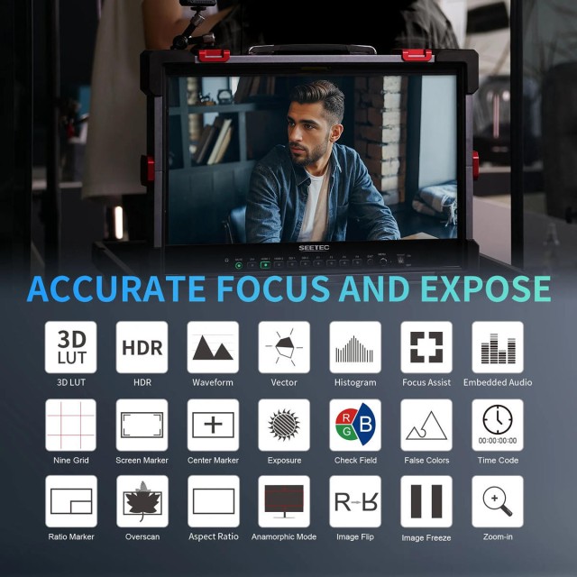 Monitor ponúka funkcie RGB Parade, YUV Parade, Y Parade, vektorskop, histogram a monitorovanie úrovne zvuku. Vďaka tomu je monitor P215-Pro ideálnou voľbou na monitorovanie živej produkcie, takže už nemusíte používať samostatné drahé merače!