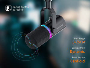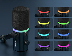 FEELWORLD PM1 XLR USB dynamický mikrofón pre podcasting nahrávanie hranie hier živé vysielanie. FEELWORLD PM1 s módnym a kompaktným dizajnom, ktorý poskytuje prirodzený, čistý zvuk a bohaté funkcie. Vhodný pre rôzne scenárové aplikácie, je ideálny pre podcast, speváka, hráča hier a hlasových hercov na nahrávanie a živé vysielanie.