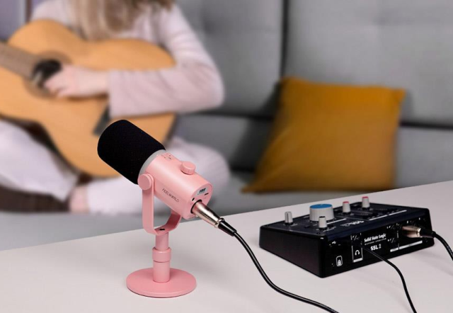 Feelworld PM1 je profesionálny dynamický mikrofón v štýlovom ružovom vyhotovení, ideálny na streamovanie a podcasting. Disponuje univerzálnymi výstupmi USB-C a XLR, kardioidnou smerovou charakteristikou a dynamickým viacfarebným RGB osvetlením. Mikrofón je dodávaný s kovovým stolným stojanom pre pohodlné nastavenie.