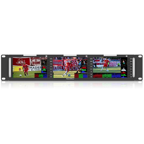 Feelworld T51 PLUS-H je trojitý 5,5-palcový Full HD monitor ur čený na montáž do racku, navrhnutý pre profesionálne vysielanie a produkciu videa, vybavený HDMI a kompozitným BNC…