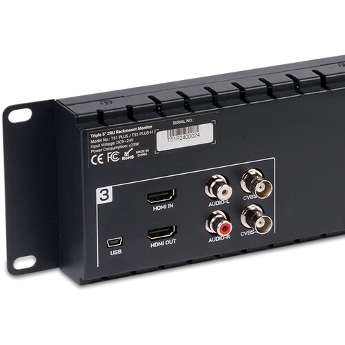 Feelworld T51 PLUS-H je trojitý 5,5-palcový Full HD monitor ur čený na montáž do racku, navrhnutý pre profesionálne vysielanie a produkciu videa, vybavený HDMI a kompozitným BNC I/O, RCA audio, výstupmi na slúchadlá, 3-farebnými kontrolkami a pokročilými nástrojmi na pomoc pri práci s videom, vrátane vlnového tvaru, vektorského osciloskopu, histogramu, pomoci pri zaostrovaní a podpory 3D-LUT.