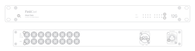 - 8-kanálový vstup SDI na 1-kanálový optický výstup (multiplexor)